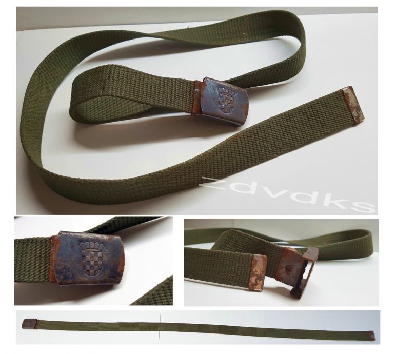 -vojni remen za hlače, Hrvatske vojske, maslinasto zeleni, s Hrvatskim grbom na metalnoj kopči