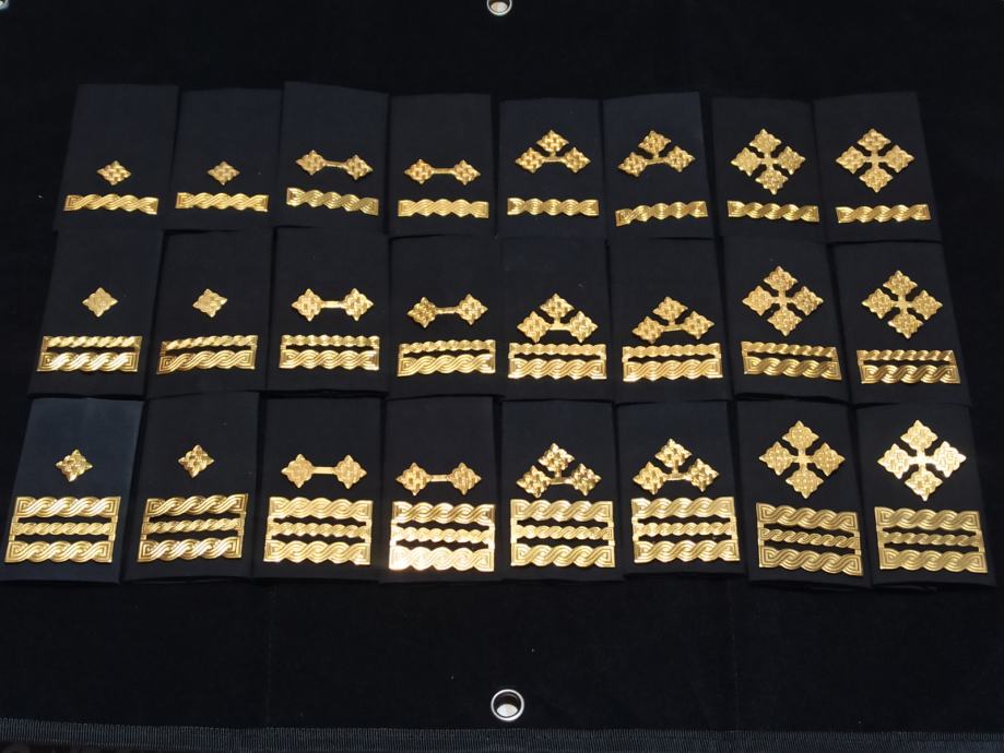 Oznake zapovjedništva manje,novije 3 eura.Veće,starije 5 eura.