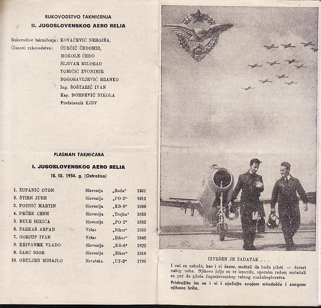 II. JUGOSLOVENSKI AERO RALLY 1955. - Za prelazni pehar maršala Tita