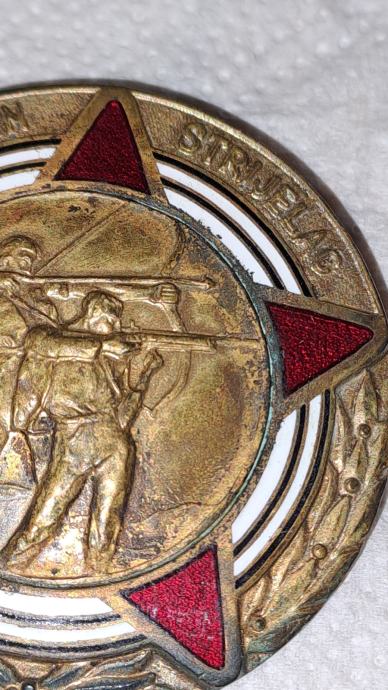 Dodeljuje se za: kao znak priznanja vojnicima i pitomcima podoficirskih škola u SFRJ, za odličan uspjeh u gađanju iz pješadijskog oružja.