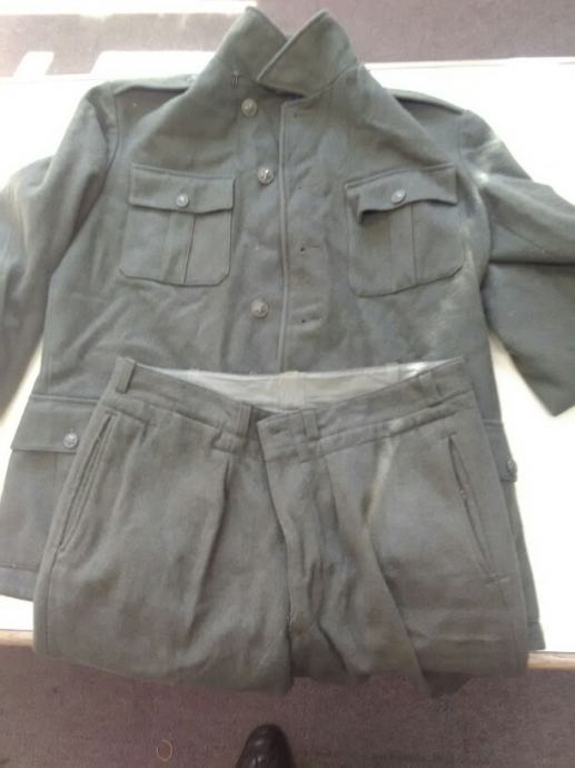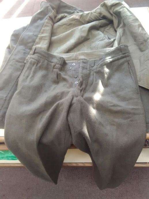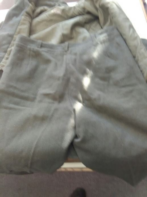 Odijelo je veličie 54, u dobrom stanju, nema oštećenja (nije ga moljac napao) i materijal nije isfucan.