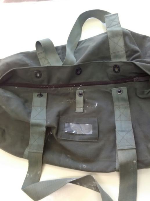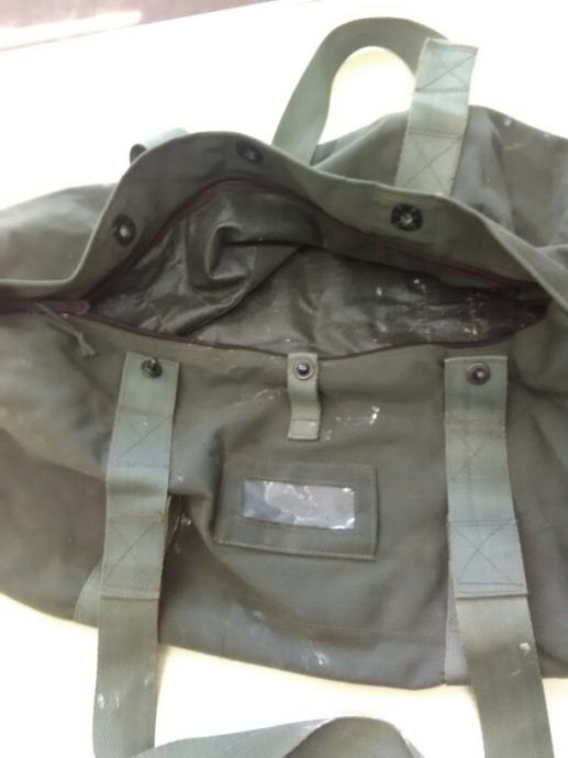 Torba je ispravna (ručke drikeri i zatvarać) vodonepropusna i u originalnom stanju. Jedino je zamazana od krećenja (ostrugati, očetkati ili oprati) ali ide van jer nije lak.