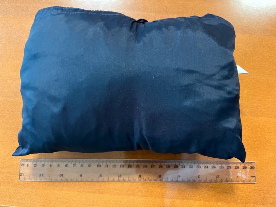 Vrećica/spremnik za kabanicu je na kabanici s unutarnje strane na leđima.