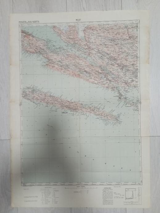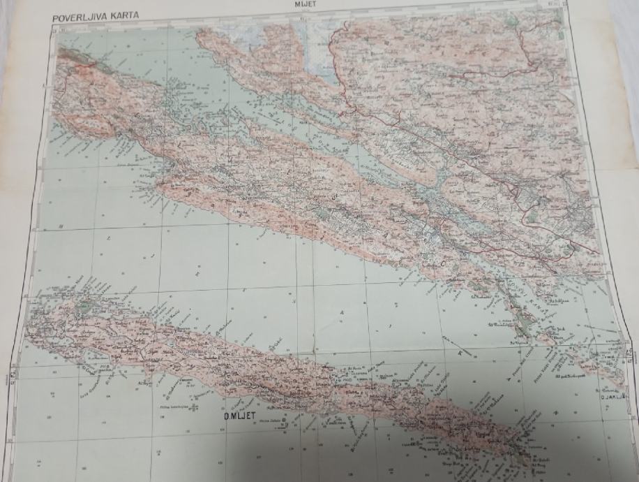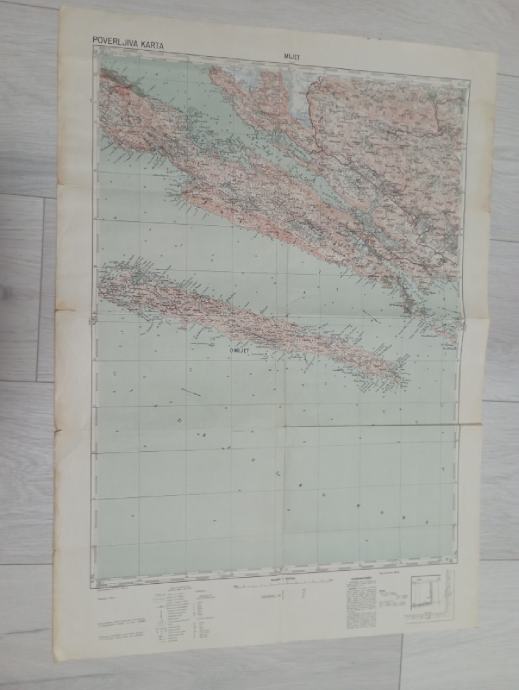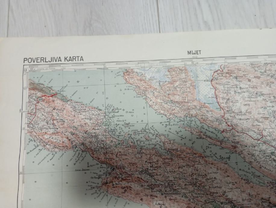 Vojna karta Mljet,POVERLJIVA KARTA ,Dimenzija 69x49 cm.,pogledajte i ostale moje oglase, šaljem poštom, tekući