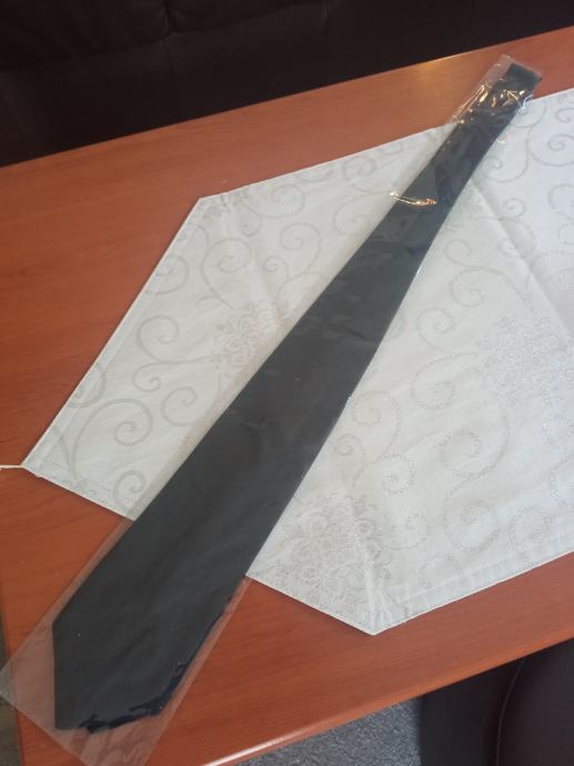 IZNIMNA RIJETKOST, svilena, t.plava, s utkanim uzorcima grba RH. Prije cca 27 godina predviđeno za uz odoru voj. sudaca i tužitelja, no radi organizac.promjena nije zaživjelo. Kravata je nekorištena, nevezana, 2 kom. Fiksna cijena.