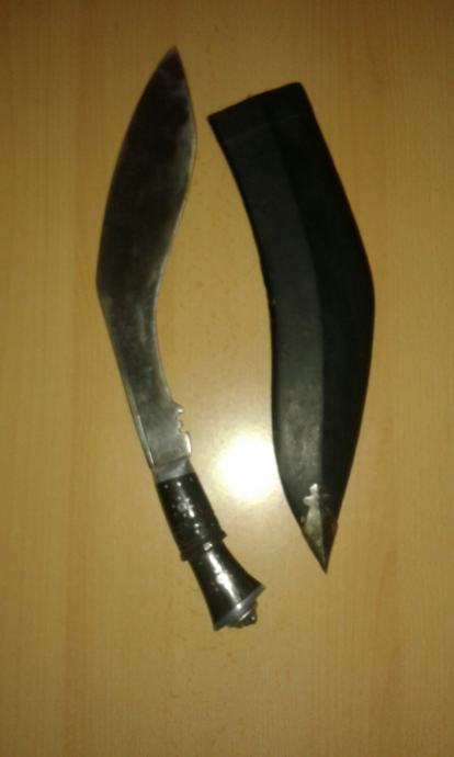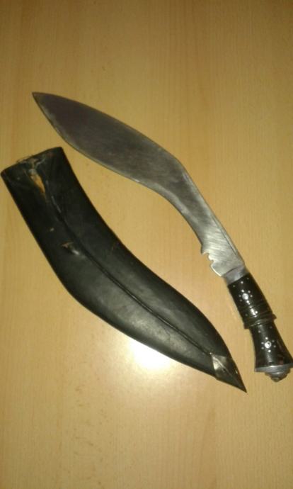 Kukri nož ukupne dužine 40 cm i oštrice dužine 30 cm korice kombinacija drvo koža uščuvan cijena 550 kuna