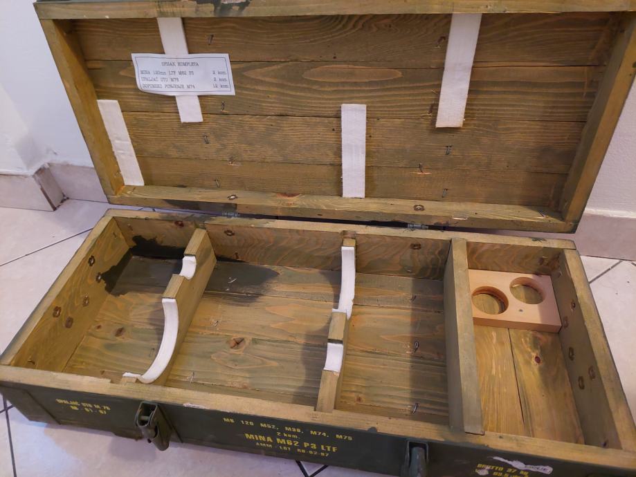Prodajem praznu drvenu kutiju za mine 120 mm minobacač