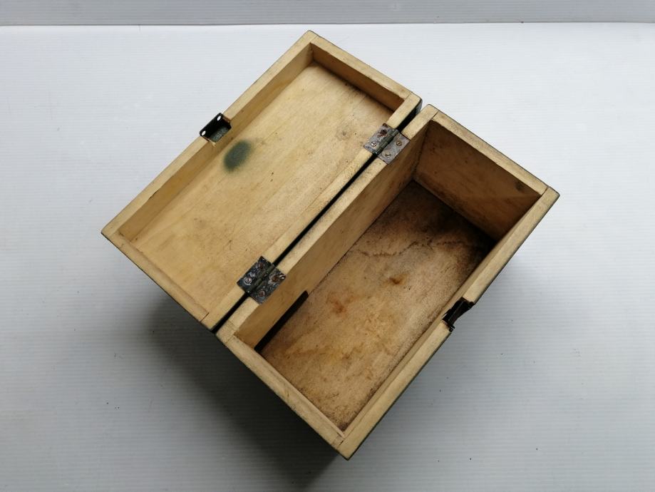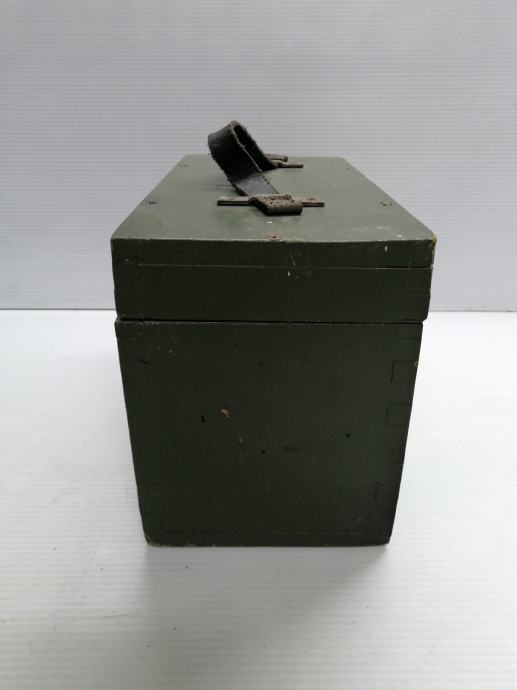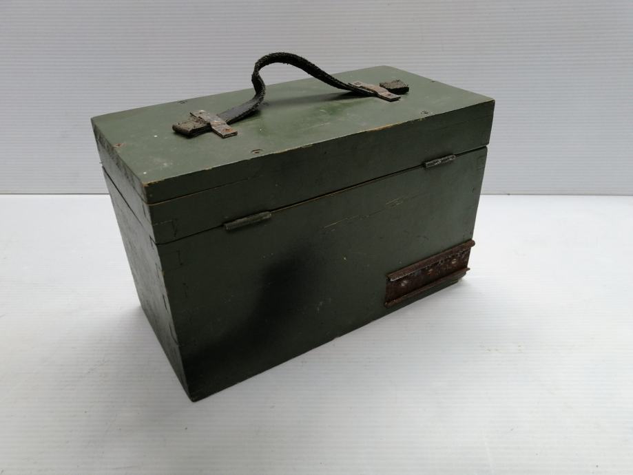Vojna drvena kutija, sanduk od nišanske sprave sa funkcionalnom bravom veličine 27 x 14cm x 17,5cm visoka.