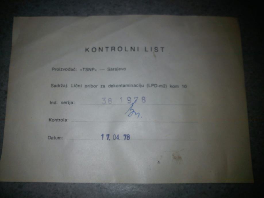LIČNI PRIBOR ZA DEKONTAMINACIJU, LPD, zapakirano, 1978.g, 4 eura komad