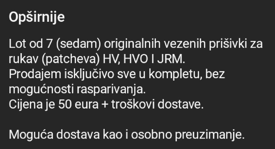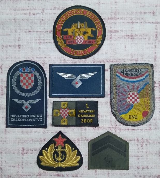 Lot od 7 (sedam) originalnih vezenih prišivki za rukav (patcheva) HV, HVO I JRM.