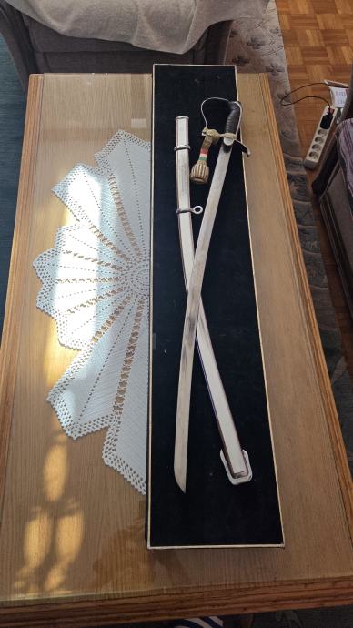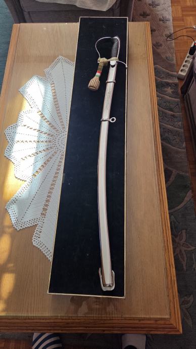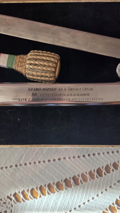 Sablja koja je dodijeljena prigodom 80. Rođendana General Majora Zrakoplovstva Mađarske József-u Szabó-i od strane Pukovnika, zamjenika glavnog kapetana Lászlo-a Szik-a.