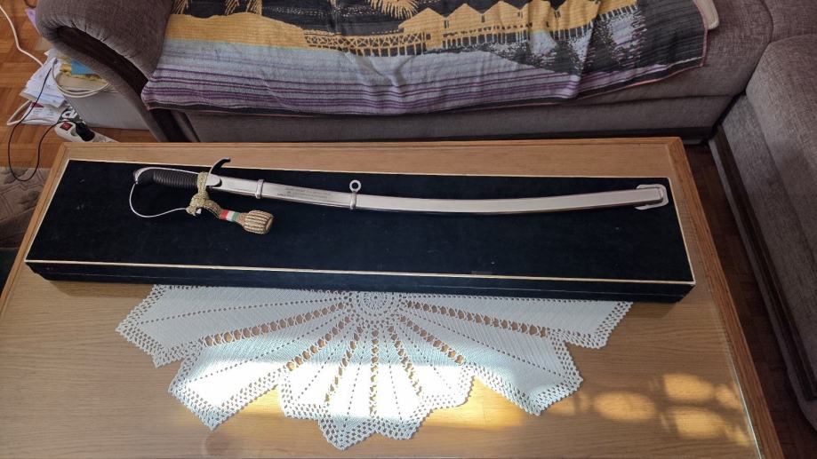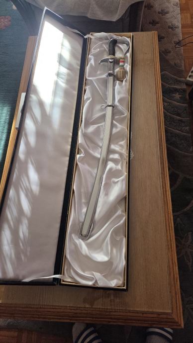 Sablja koja je dodijeljena prigodom 80. Rođendana General Majora Zrakoplovstva Mađarske József-u Szabó-i od strane Pukovnika, zamjenika glavnog kapetana Lászlo-a Szik-a.