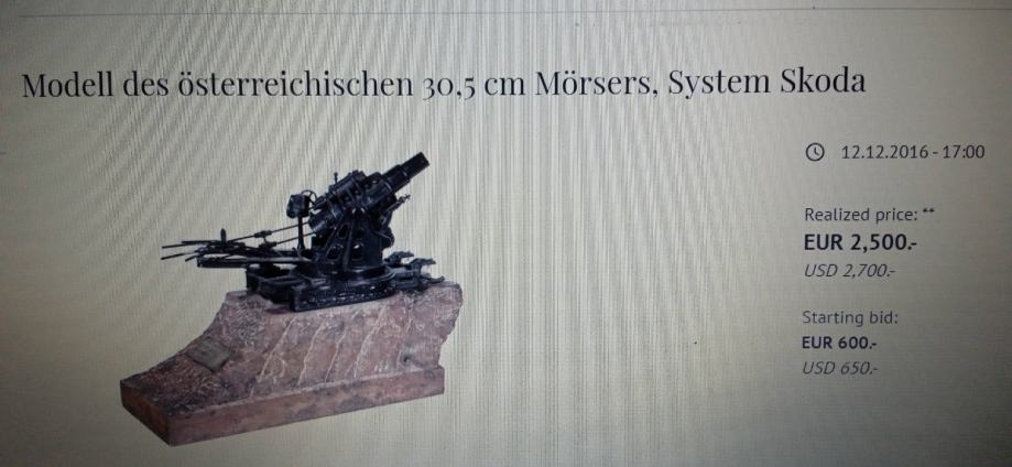 Radi se o rijetkoj maketi škodinog morsera koji je težio20830kg,posade17 ljudi dve vrste punjenja od 287 i 384kg ubojitog u krugu od 400m,proizvedeno 79kom i sačuvano 3kom u svijetu,ovo je jedna od maketa za komande štabove i sačuvano je nešto više primjeraka,vrlo rijedak komad