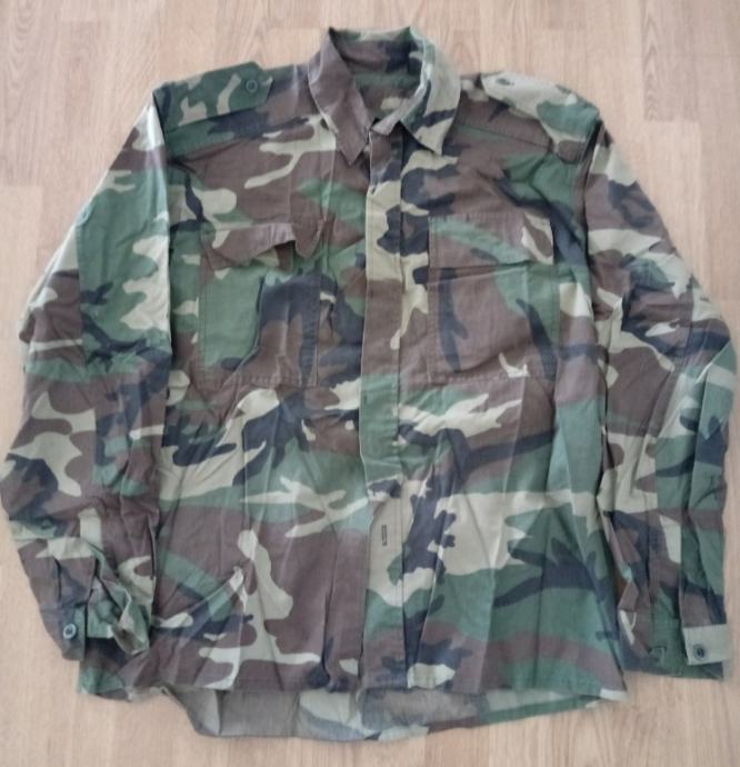 Vojna maskirna kosulja iz domovinskog rata. 1993. Godina. Izuzetno kvalitetan materijal, vrlo ugodan i mekan, 100% pamuk. Nošena je samo nekoliko puta, oprana i opeglana, a u takvom je stanju da nema tragova korištenja. Veličina je XL ili 52-54. Cijena 30 eura. Mob 095 573 5601
