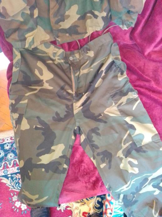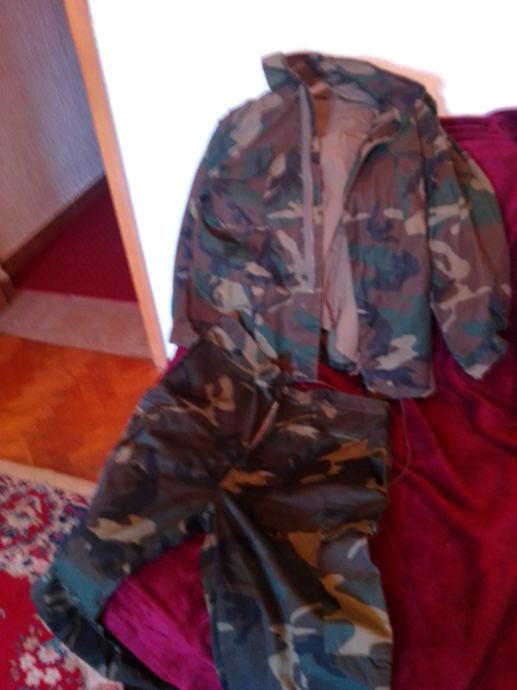 Jakna je u dobrom stanju cijena je 25€ ,hlaće su nove nenošene u struku 102cm i dužine nogavica 120cm od struka ,cijena 35€ ,pošto suslične boje može i kao komplet(komplet je 60€),a može i idvojeno.Šaljem poštom uplatom na moj tekući račun+ troškovi poštarine