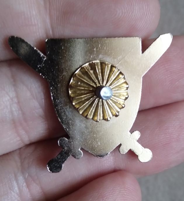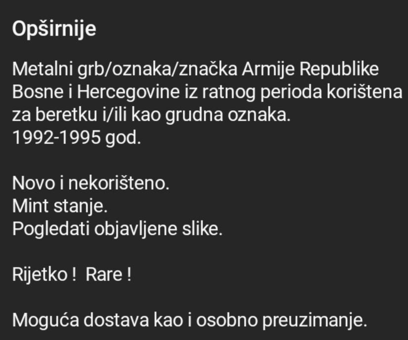 Metalni grb/oznaka/značka Armije Republike Bosne i Hercegovine iz ratnog perioda korištena za beretku i/ili kao grudna oznaka.