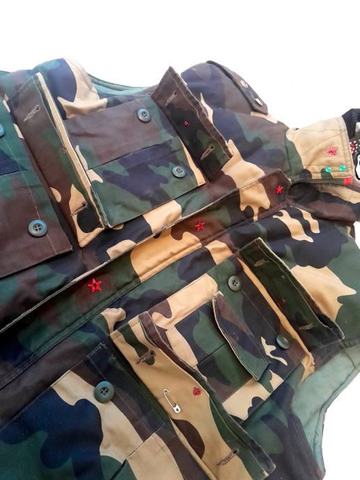 PRODAJE SE VOJNI HV PRSLUK UNIKAT , U NIKATNO UREDJEN SVE RUCNO SA APLIKACIJAMA SVE APLIKACIJE RADJENE OD SPECIJALNOG MATRIJALA ,RUCNIM RADOM NIISTA NA PRSUKU NIJE TISAK NA PLATNU ,SVE RUCNI RAD ,UNIKATNI PREDMET,cijena(snizeno) 58