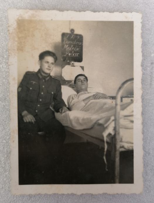 Legionar u posjeti prijatelju Domobranu u bolnici...Vidi se ime i prezime te godina na ploči iznad kreveta