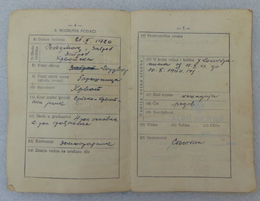 NDH - Partizani - JA - Vojna knjižica sa slikom