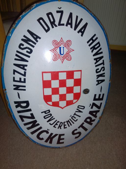 Prodajem metalni znak iz doba NDH. Original boja, vidljivi tragovi "hrđe".