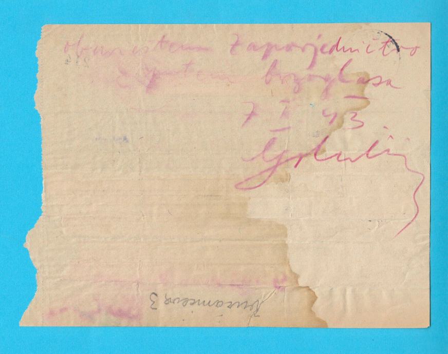 Originalni službeni telegram Ustaške Nadzorne Službe (UNS) iz 1943. godine.