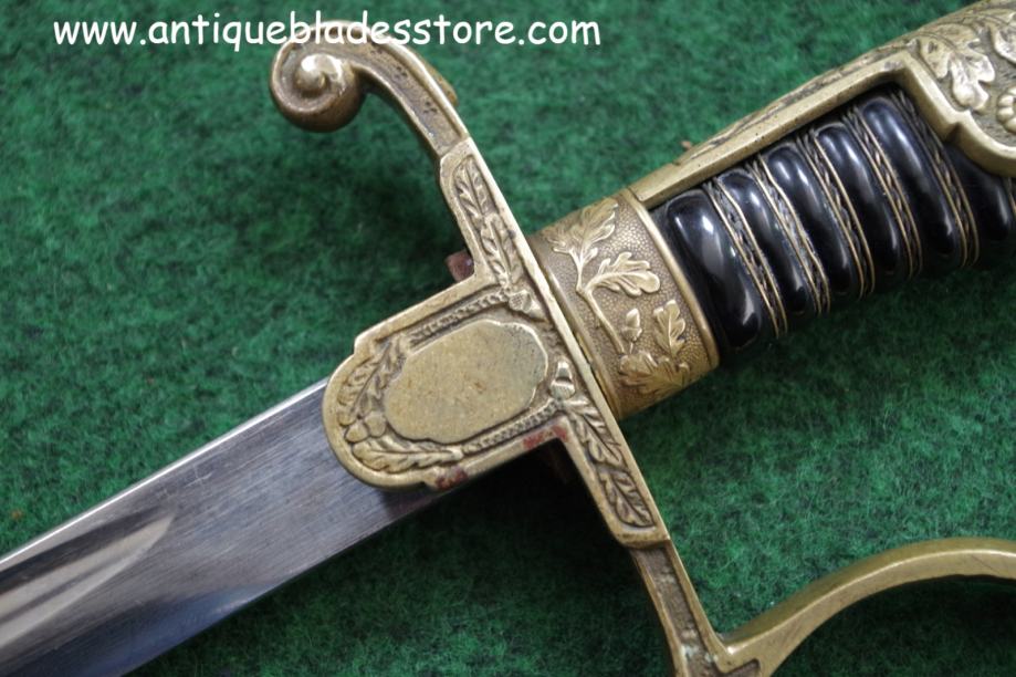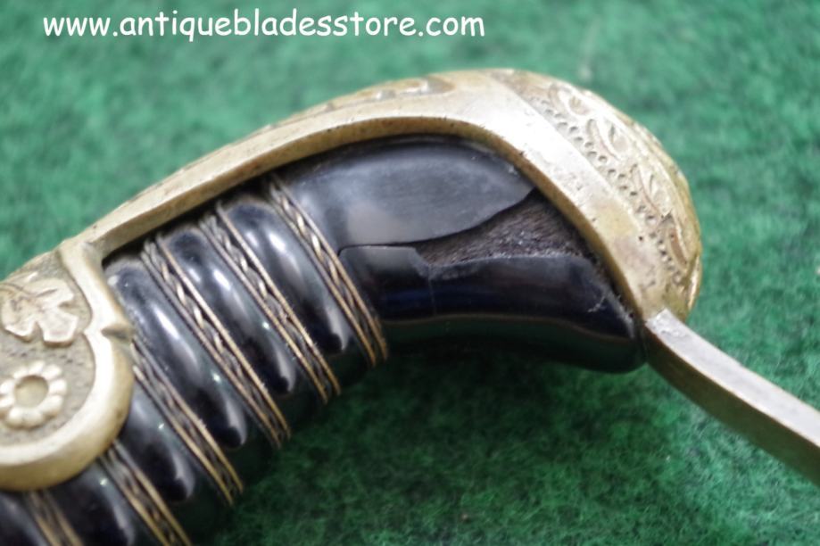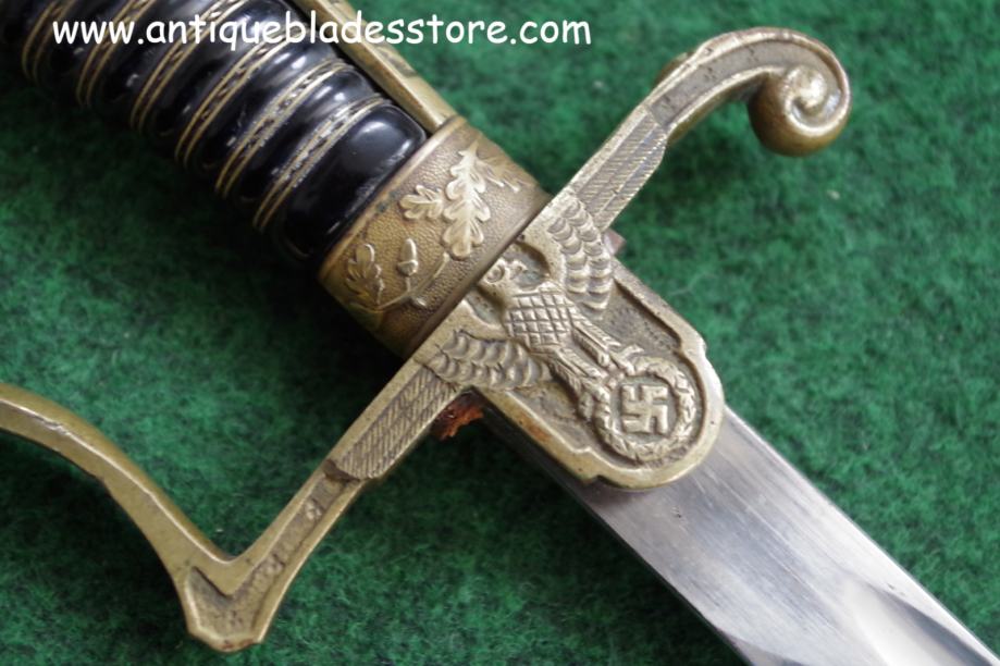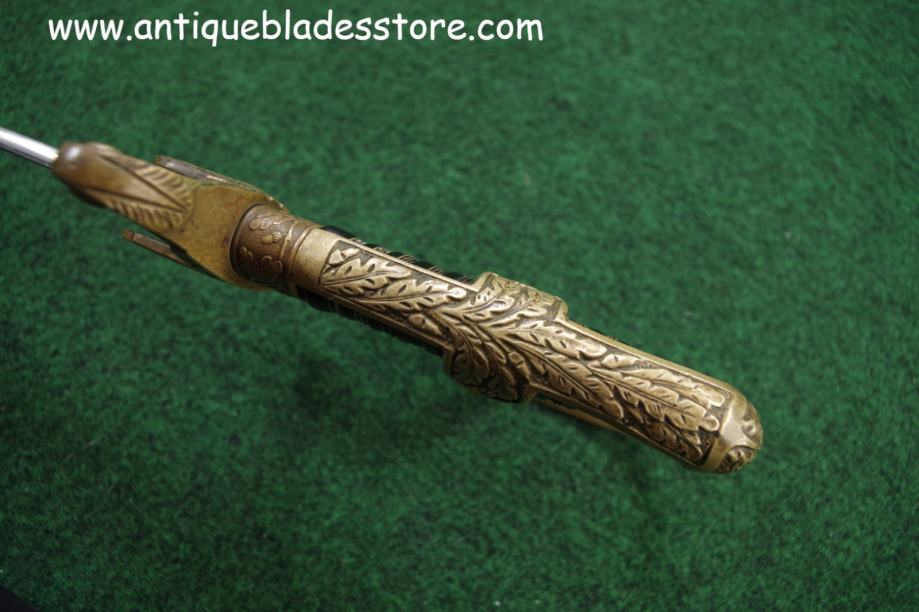 Mjedeni štitnik i gornji okov ručke u reljefu sa hrastovim lišćem i simbolima iz ww2 perioda