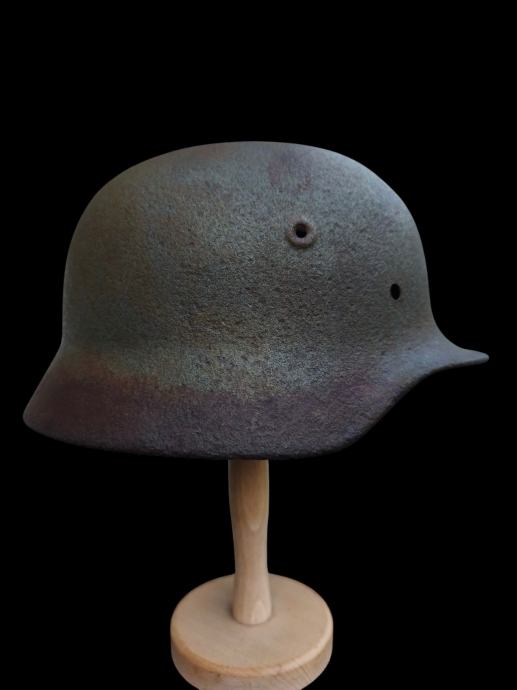 Kaciga sa ostacima Jagergrau boje, stanje vidljivo na slikama.
