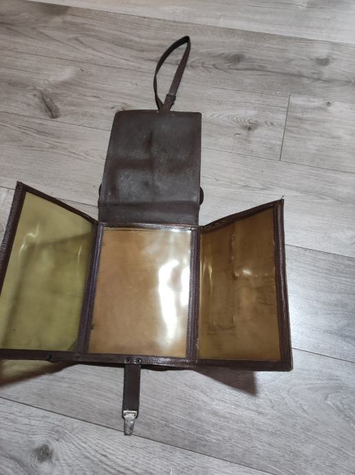 Ispravna kozna oficirska vojna torba za karte u dobrom stanju. koza je mekana i neostecena kao i unutrasnjost torbe