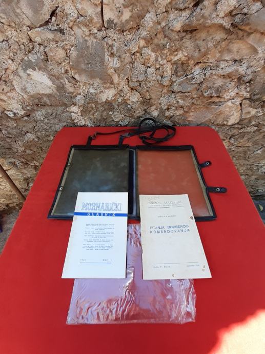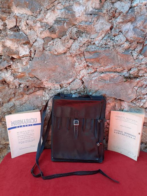 Prodaje se kožna oficirska torba JNA sa vojnim pomorskim glasnikom i vojnim nastavnim priručnikom i to u plastičnom omotu.