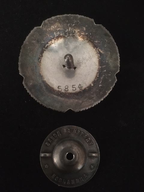 materijala izrade (legura bakra i cinka) i naziv Ordena (Orden zasluga za