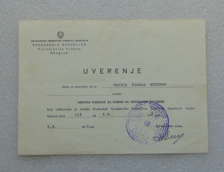 Orden Zasluge za Narod sa Srebrnom Zvezdom