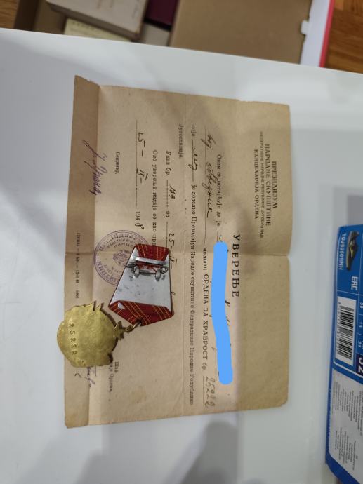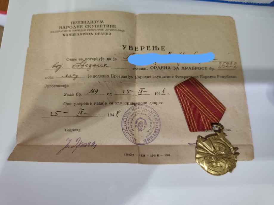 Orden za hrabrost, uvjerenje bez kutije - 70 eura;