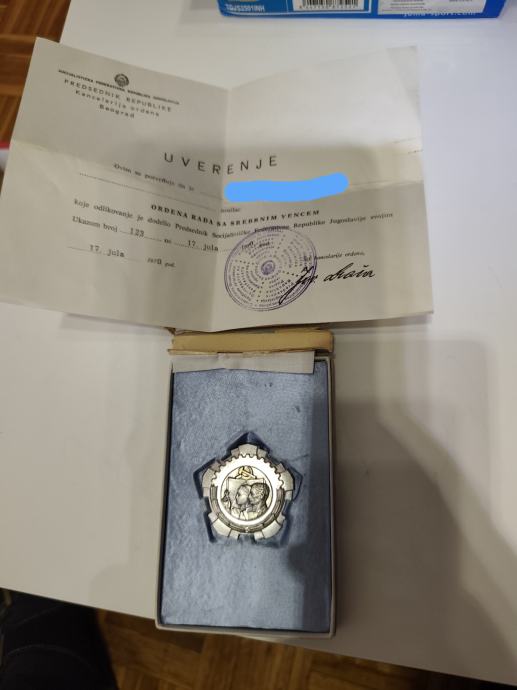 Orden rada sa srebrnim vijencem, kutija (malo strgana ali se zatvara), uvjerenje - 40 eura