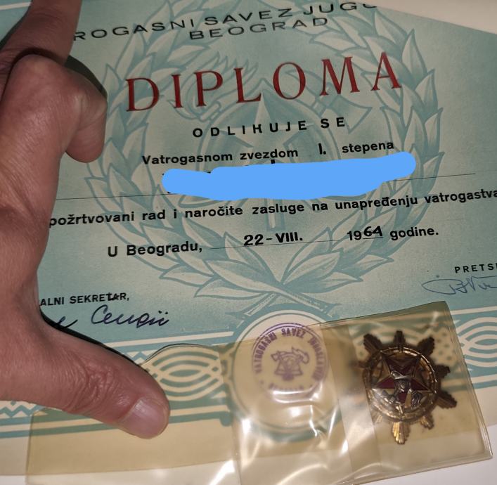 Orden vatrogasne zvijezde I. reda, sa diplomom u tuljcu - 330 eura;