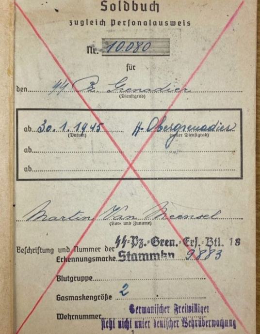Original Soldbuch SS 27. SS-Freiwilligen-Grenadier-Division „Langemarck“ (flämische Nr. 1).