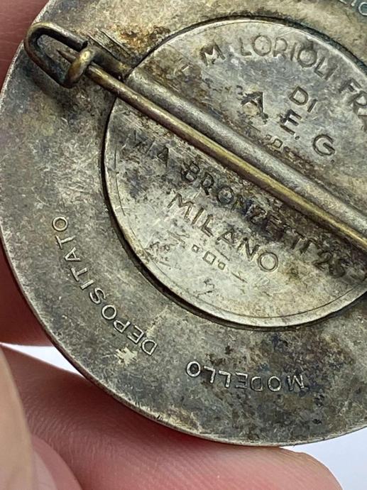 Na prodaju je autentična značka talijanske omladinske fašističke organizacije G.I.L. (Gioventù Italiana del Littorio) iz razdoblja prije Drugog svjetskog rata. Značka nosi natpis “CREDERE · OBBEDIRE · COMBATTERE”, a na poleđini je jasno otisnut proizvođač M. Lorioli Fratelli – Via Bronzetti 25, Milano, s oznakom „MODELL0 DEPOSITATO”. Predmet je iz razdoblja fašističke Italije i služi kao kolekcionarski artefakt te podsjetnik na povijesno razdoblje.