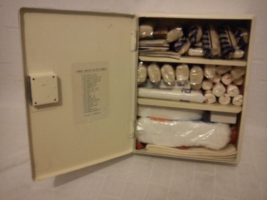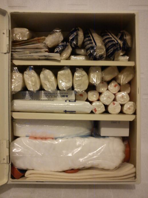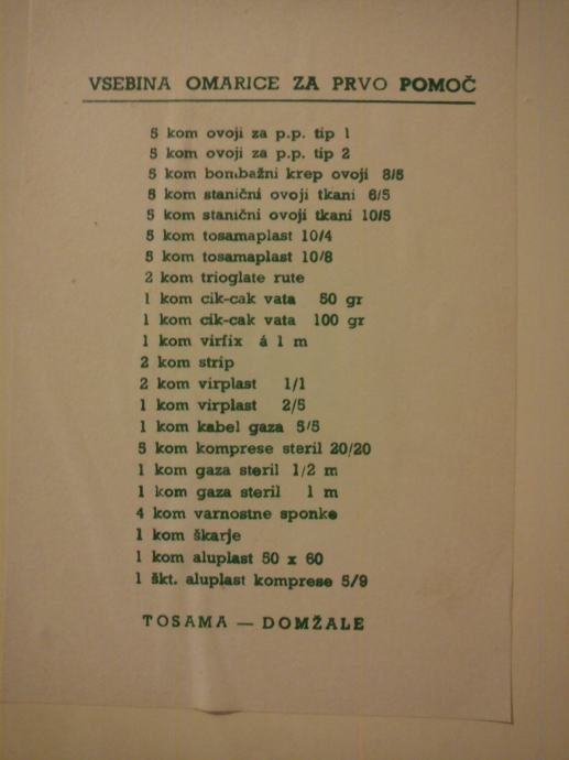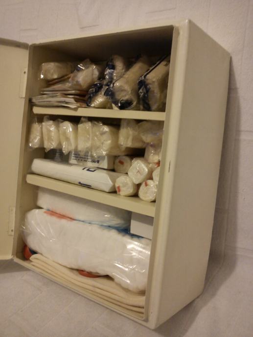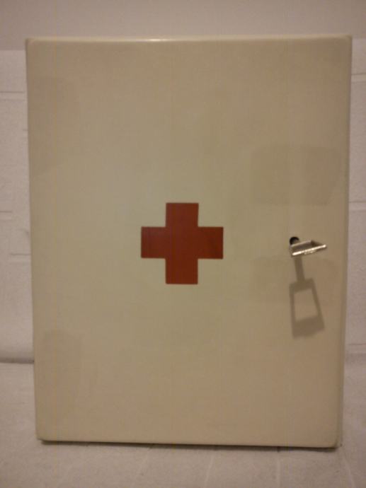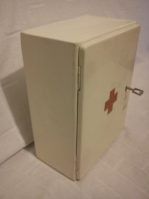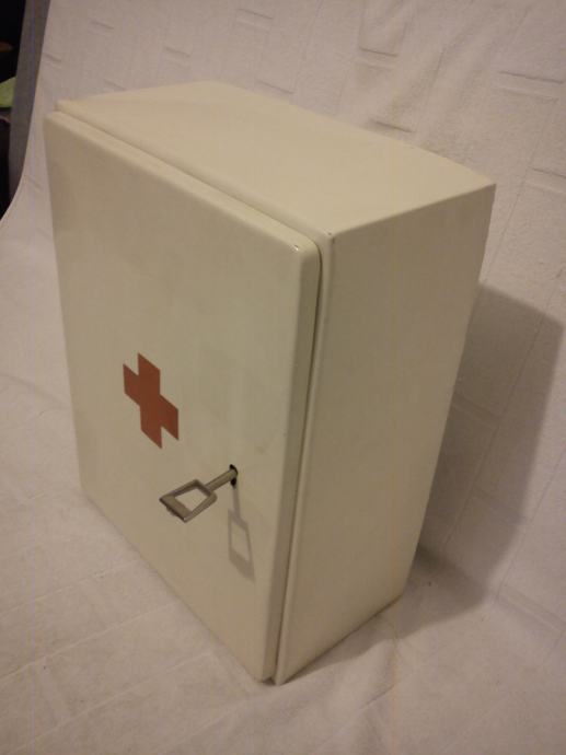 ORMARIĆ PRVE POMOĆI, METALNI, TOSAMA DOMŽALE, ODLIČNO OČUVAN KOMPLETAN