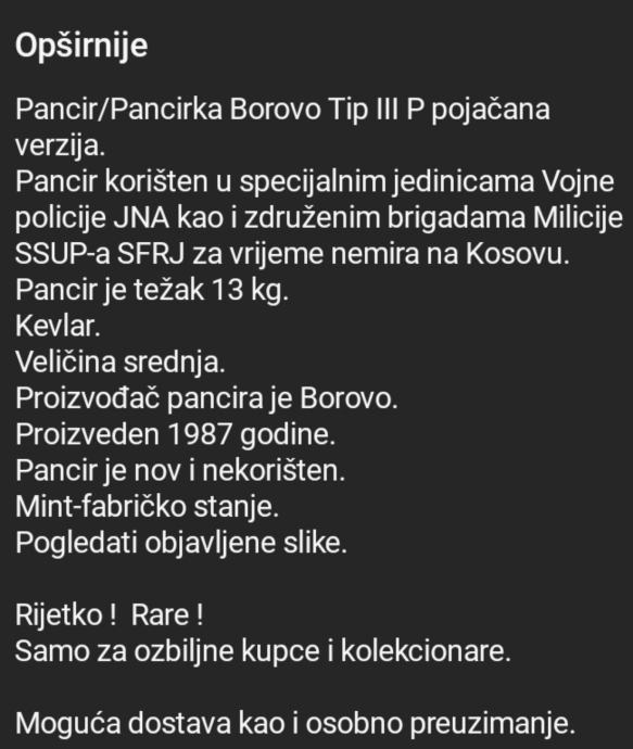 Pancir korišten u specijalnim jedinicama Vojne policije JNA kao i združenim brigadama Milicije SSUP-a SFRJ za vrijeme nemira na Kosovu.