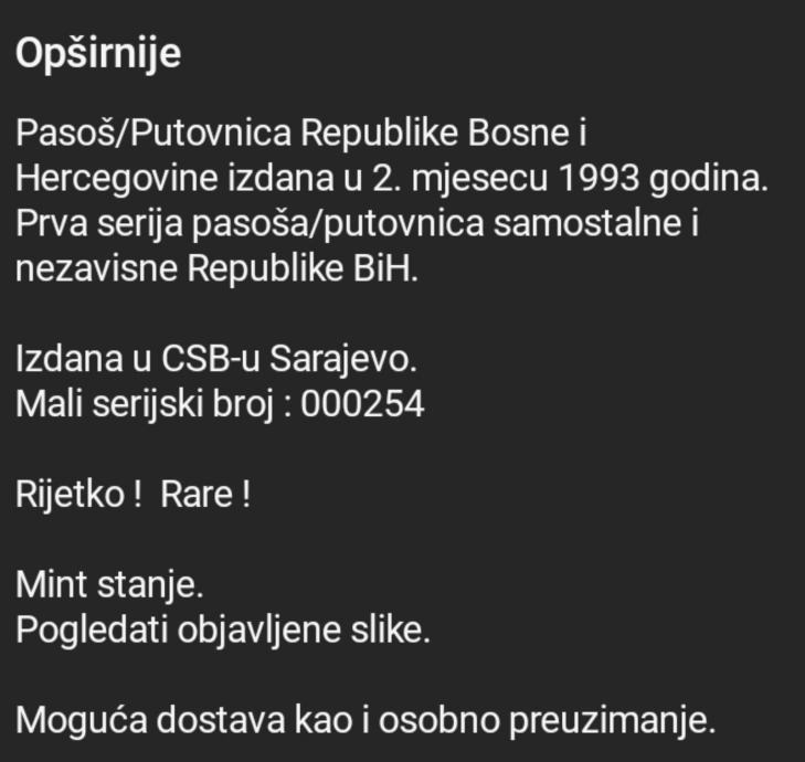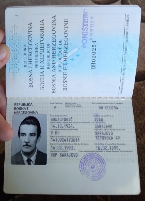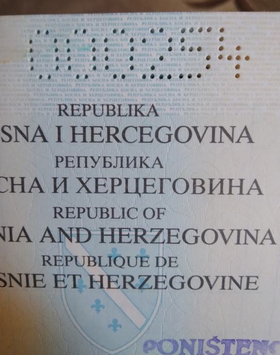 Pasoš/Putovnica Republike Bosne i Hercegovine izdana u 2. mjesecu 1993 godina.