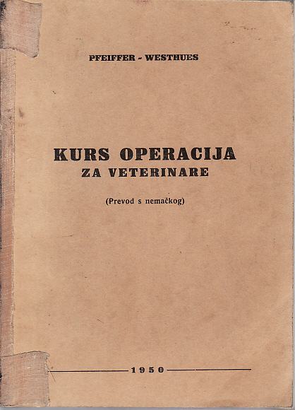 PFEIFFER - WESTHUES : KURS OPERACIJA ZA VETERINARE, IZDANJE VETERINARSKE UPRAVE JA 1950.