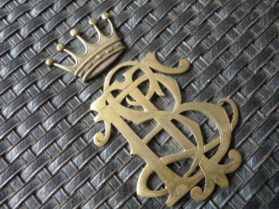 Plemički kožnati etui za dokumente s monogramom i grofovskom krunom.