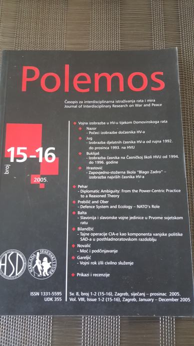 POLEMOS 15-16, Časopis za interdisciplinarna istraživanja rata i mira