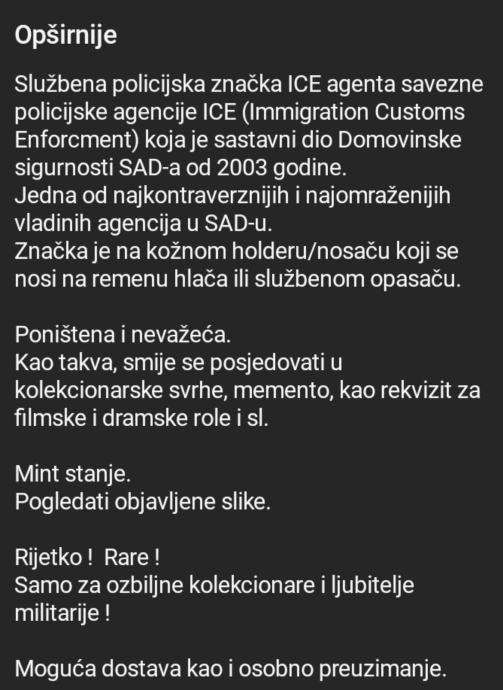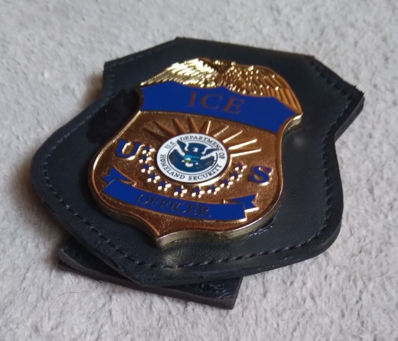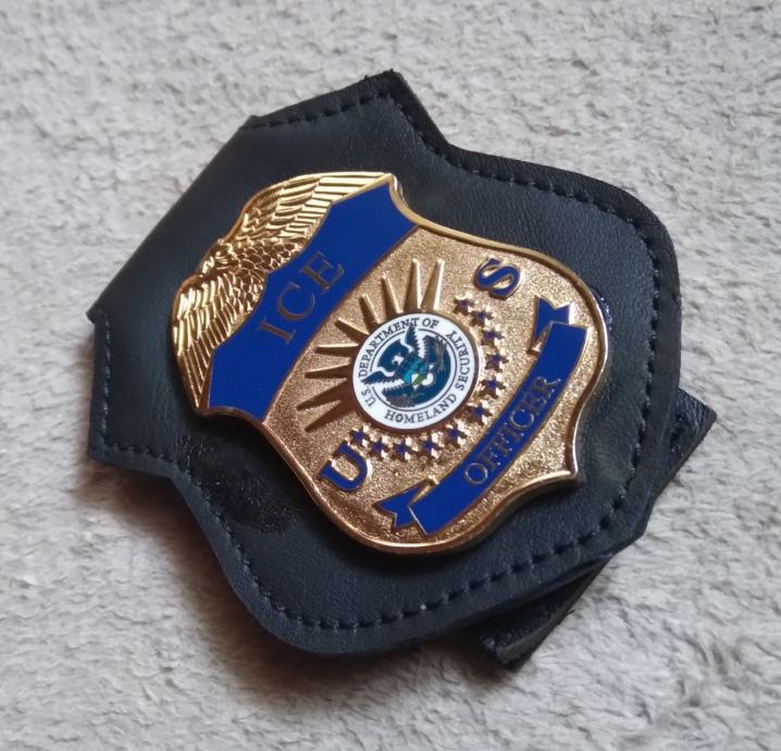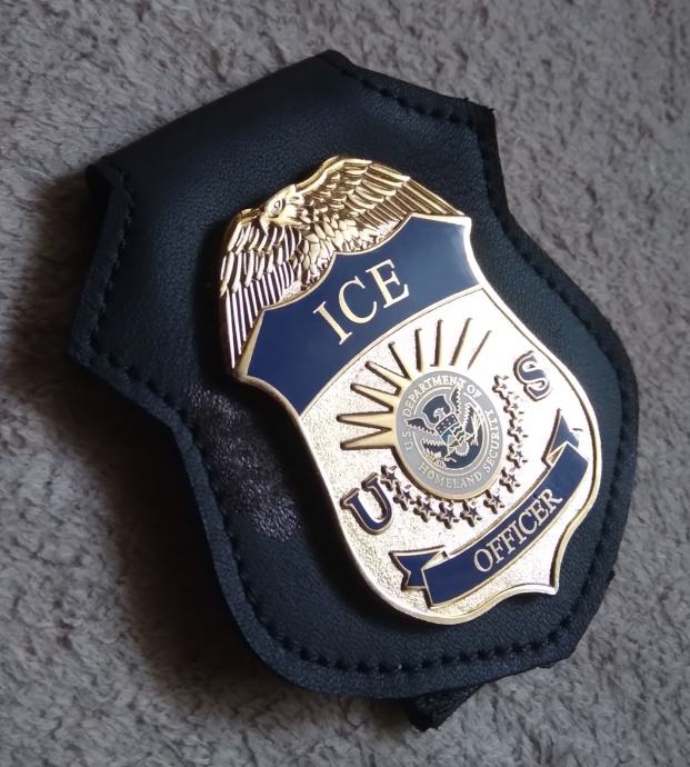 Službena policijska značka ICE agenta savezne policijske agencije ICE (Immigration Customs Enforcment) koja je sastavni dio Domovinske sigurnosti SAD-a od 2003 godine.