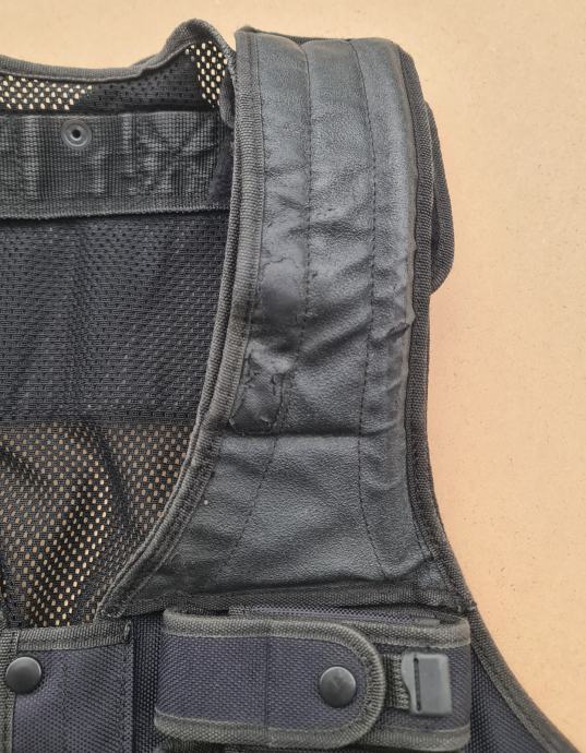 Nošen s vidljivim znakovima korištenja no savršeno ispravan i bez greške. Neuništiv je tako i onako pa brige nemate. Oznaka Policije je na čičak te se može skinuti.