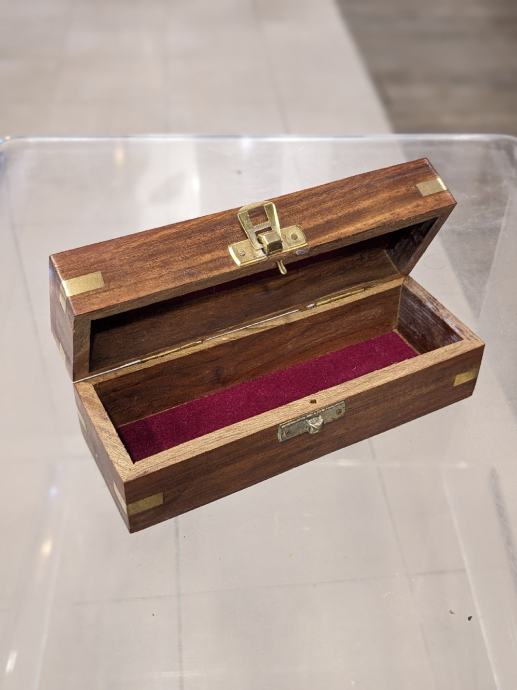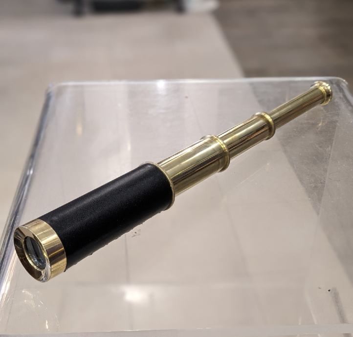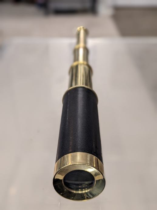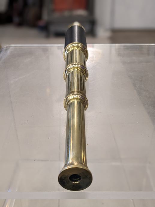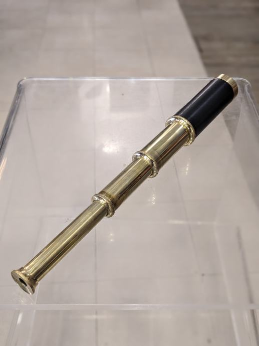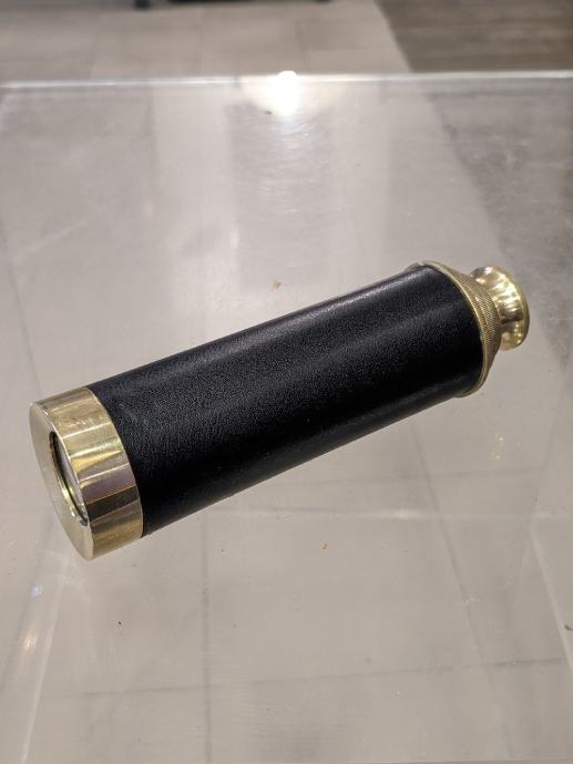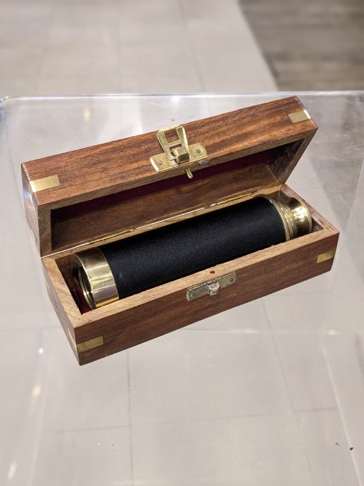 Durbin u kućištu od mesinga i kože. Funkcionalan, bez oštećenja, leće su čiste. Dolazi sa kutijom.