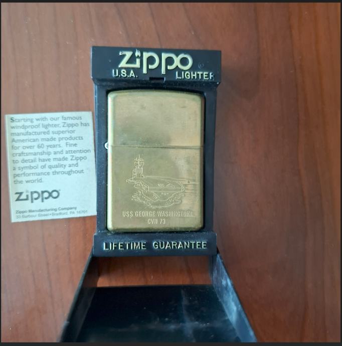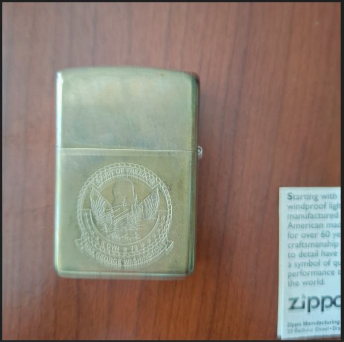 Prodajem Zippo upaljač kupljen na nosaču zrakoplova George Washington za 150 eura. Riječ je o kolekcionarskom primjerku. Stanje vidljivo na slici.