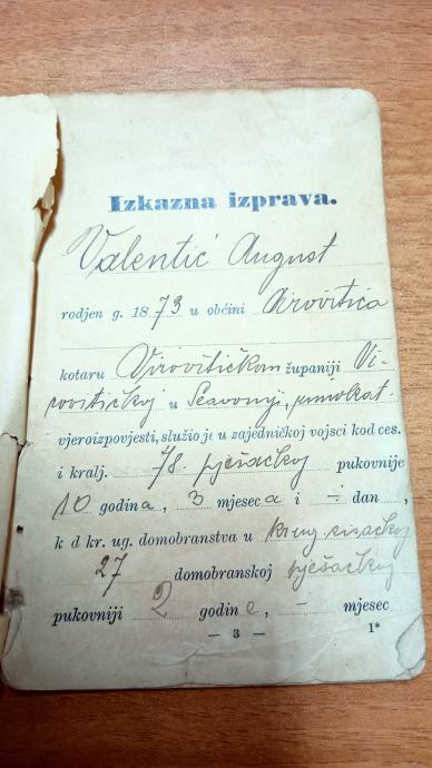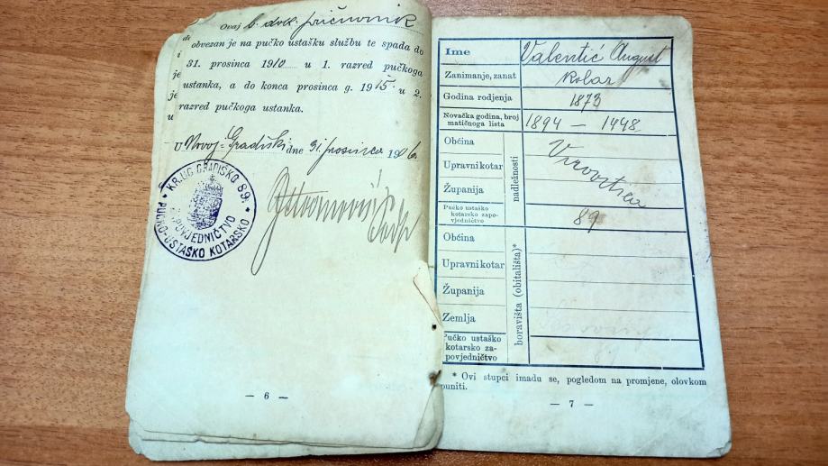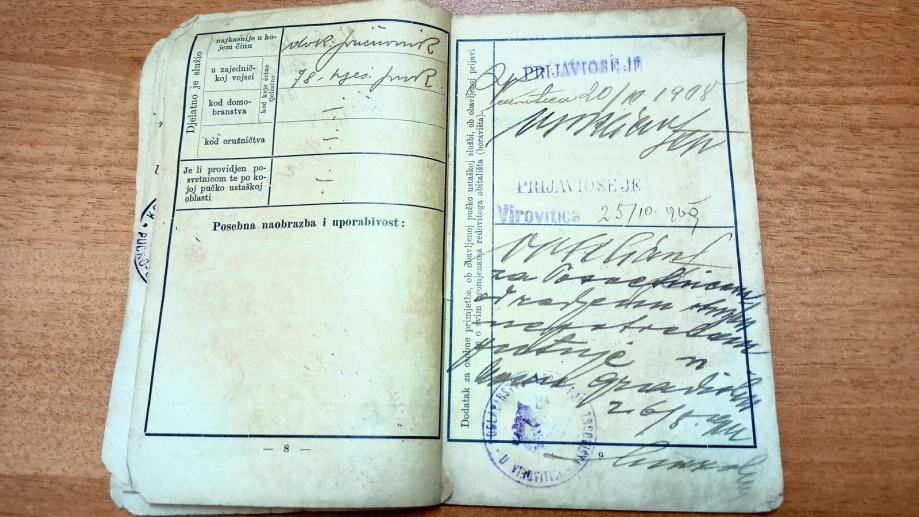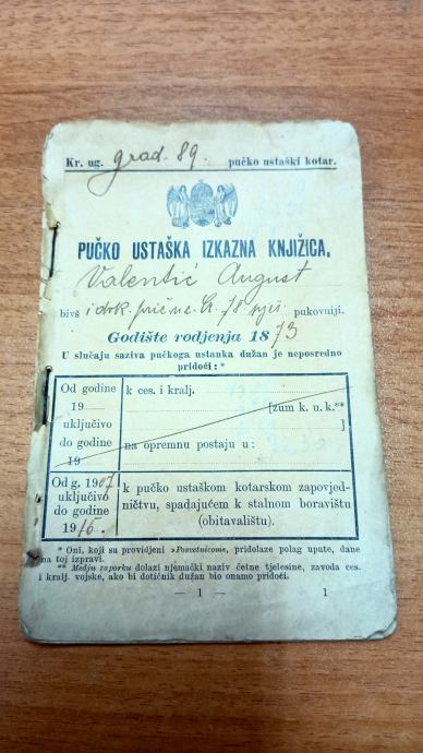 Prodajem pučko ustašku izkaznu knjižicu sa kraja 19. stoljeća i početka 20. stoljeća. Solidno ušćuvana obzirom na starost više od 100 godina, sa preciznim zapisima, godinama, zaduženjima i originalnim žigovima. Dimenzije 100x155 mm, sa 13 stranica. Za kolekcionare koji vole skupljati originalne militarne predmete. Cijena 20€. Molim zvati na mob. 091/2356157