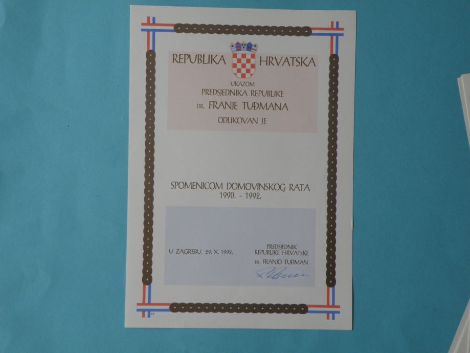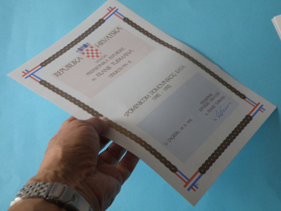 Diplome su orginalne iz vremena . Ovaj prvi tip diplome, bio je korišten prilikom prvih dodjela "SPOMENICE DOMOVINSKOG RATA 1990-1992 ", samo u prvoj godini . Kasnije je napravljen novi tip diplome .