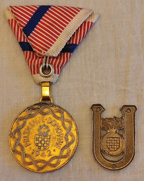 Zlatna ranjenička medalja + U oznaka za kapu
