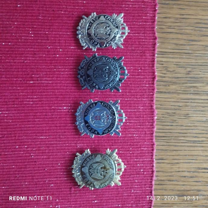 Prodaju se u kompletu oznake za vojvode,časnike i dočasnike,vojnike sve su različite ,na pozive i SMS poruke ne odgovaram,samo preko njuškalo poruka poštarina u cijeni uključena